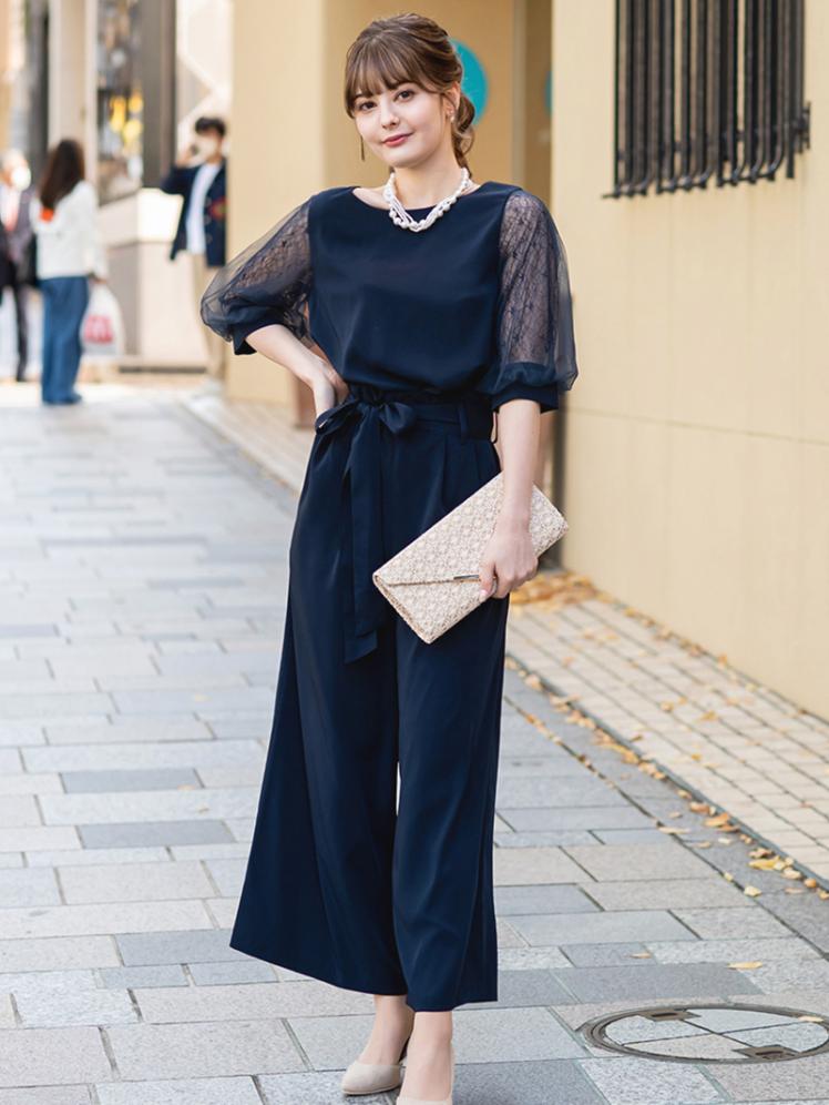 パフスリーブワイドパンツドレス(ネイビー)CR3-414NA-L