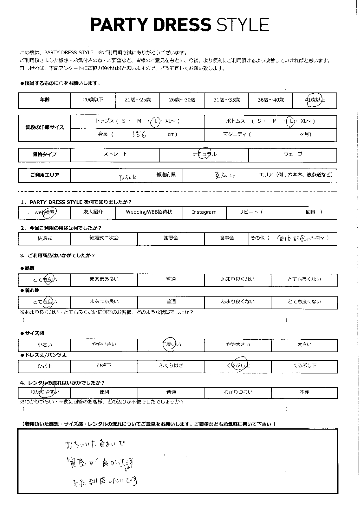 この度は、PARTY DRESS STYLEをご利用いただきありがとうございます。