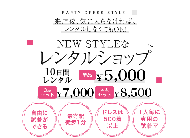 新品新作ドレスを「購入」も「レンタル」も出来る東京池袋にあるNEW STYLEなドレスショップです。