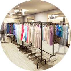 お好きなアイテムを試着できます。パーティに必要なバッグなどの小物類も多数取り揃えております。ごゆっくりお選びください。