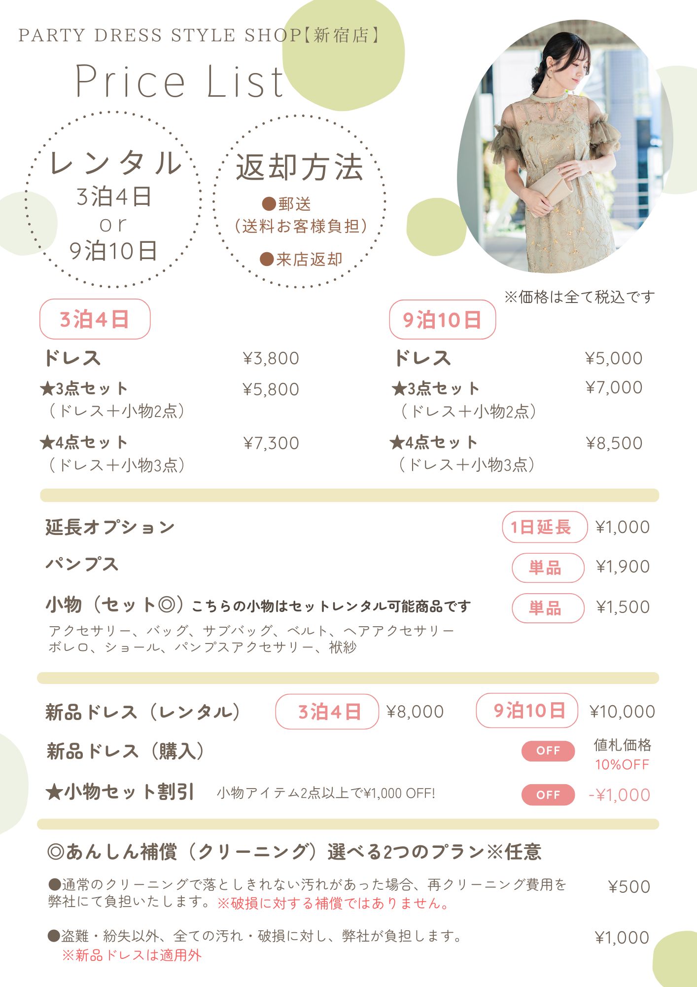 4日間レンタルALL¥3,800・10日間レンタルALL¥5,000!どのドレスを選んでも同じご料金でレンタル可能♪ご希望のレンタル期間をお選びいただけます!利用日当日の来店もOK!