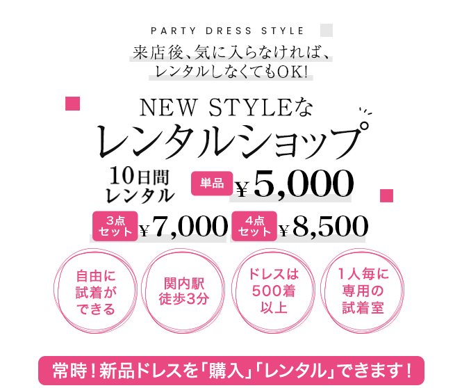 新品新作ドレスを「購入」も「レンタル」も出来る横浜関内にあるNEW STYLEなドレスショップです。
